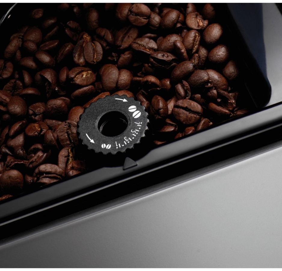 - Velmi tichý zabudovaný ocelový mlýnek na zrnkovou kávu – nastavitelná hrubost mletí