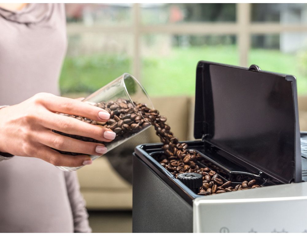 Vaše oblíbená zrna pojme zásobník s kapacitou 200 g a čerstvou vodu můžete kdykoliv dolít do 1,8l nádržky. Vysoce kvalitní, kónický ocelový mlýnek zase zaručuje perfektní a tiché mletí, které si můžete přizpůsobit až ve 13-ti stupních. A když přijde na řadu čištění - vyjímatelná spařovací jednotka podstatně usnadňuje údržbu kávovaru.