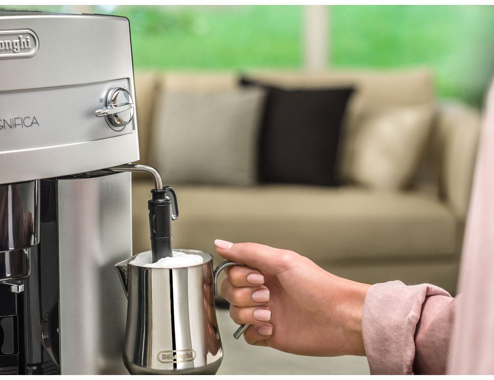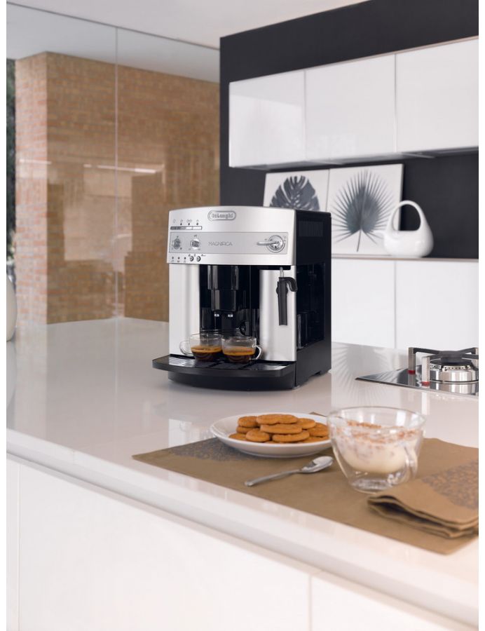 Plnoautomatické espresso DeLonghi ESAM 3200 Magnifica potěší i svým vzhledem. Kvalitní provedení a prémiový stříbrný design předurčuje tento kávovar k použití v jakékoliv domácnosti. Komfortní ovládání zaručují přehledná tlačítka.