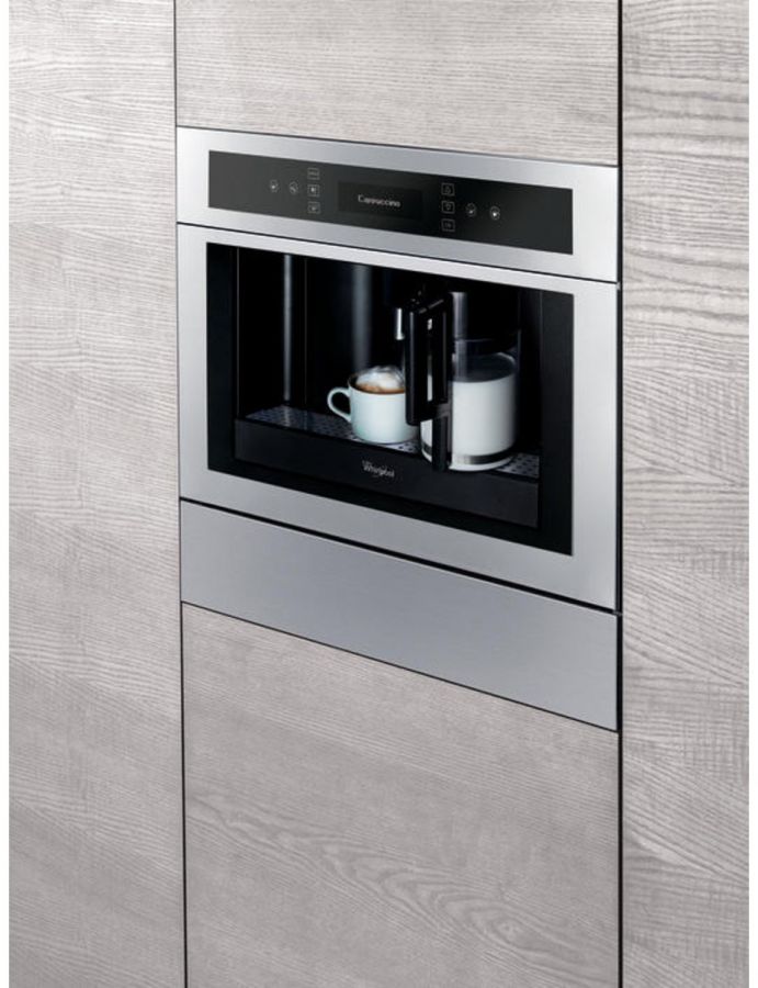Vestavný plně automatický kávovar má funkci Capuccino, velký přehledný displej, nerezový povrch iXelium, který brání poškrábání a zažloutnutí.