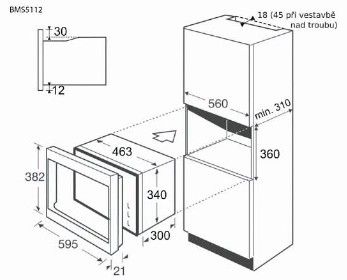 - Vestavná mikrovlnná trouba do horní skříňky 31 cm hluboké