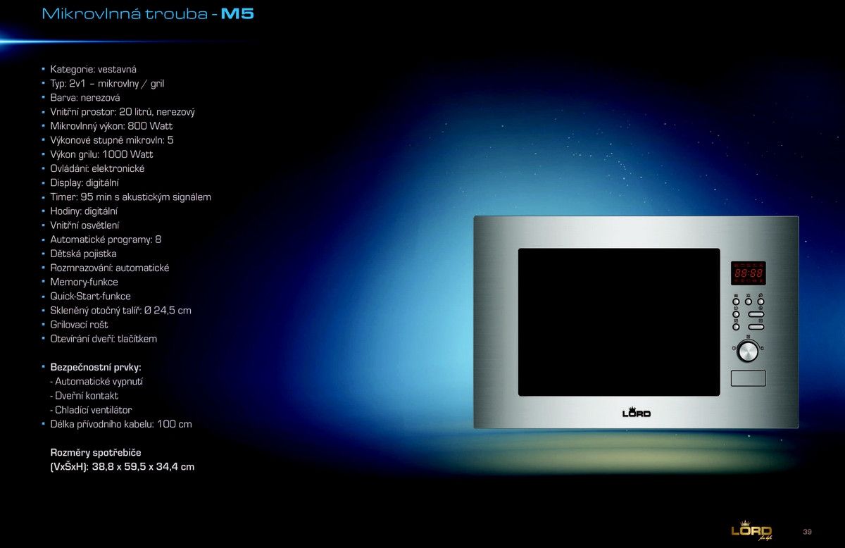 Mikrovlnná trouba LORD M5 zdravý požitek za minutu. Tato trouba nabízí 8 automatických programů. Digitální displej, mikrovlny /gril, 20 litrů.
