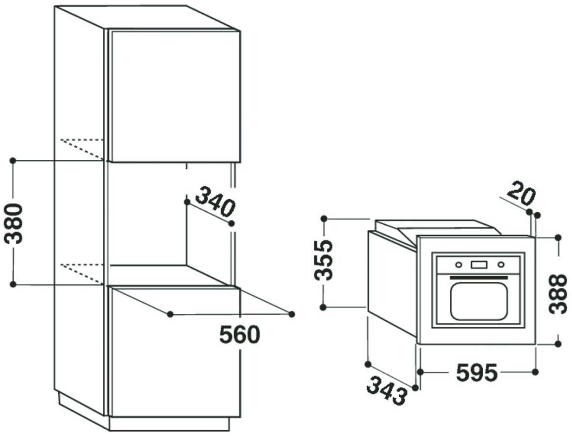 Vestavná mikrovlnná trouba s 5-ti stupni výkonu a objemem trouby 20 l.