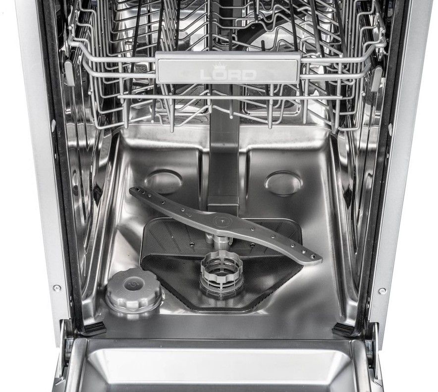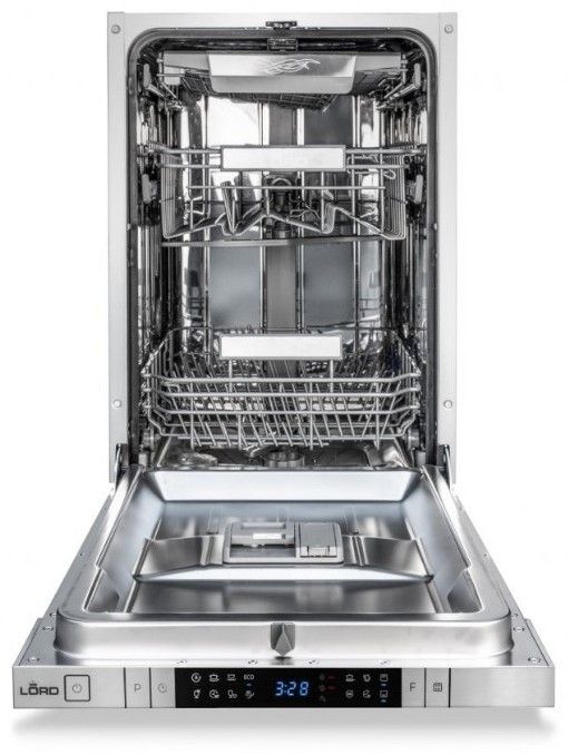 Vestavná myčka nádobí LORD D2 o šířce 45 cm se řadí do energetické třídy C. Myčka dokáže pojmout celkem 10 jídelních sad. Její vnitřní prostor je uspořádán tak, aby se každý kus nádobí ze sady dokonale umyl a usušil. Nádobí se dá rozdělit do celkem 3 úrovní. Navíc uvnitř najdete i příborovou zásuvku, která zajistí perfektně umyté příbory a zároveň více místa pro další, objemnější nádobí. Po skončení mycího cyklu se myčka umí sama automaticky otevřít.