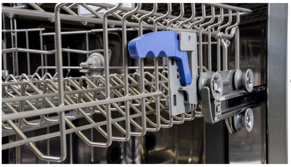 Variabilní zásuvka na příbory umístěná nad vrchním košem myčky přináší uživateli komfort a pohodlí během plnění myčky.