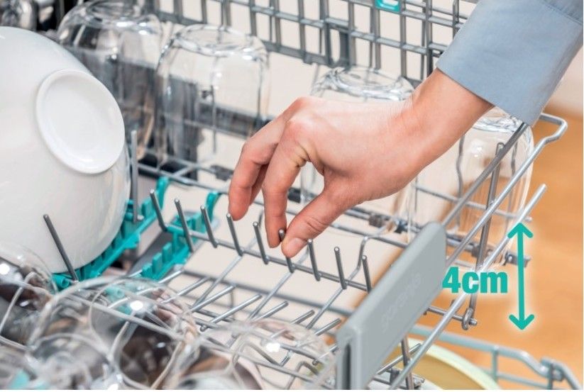 Opravdu jednoduchý dvouúrovňový systém nastavení koše vám umožní umístit i ty největší hrnce a talíře. Díky tomu lze vnitřek vaší myčky zcela přizpůsobit vašim aktuálním potřebám.