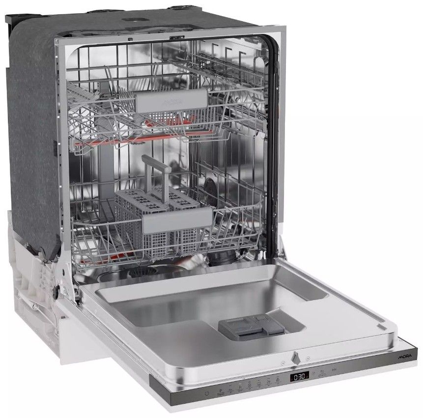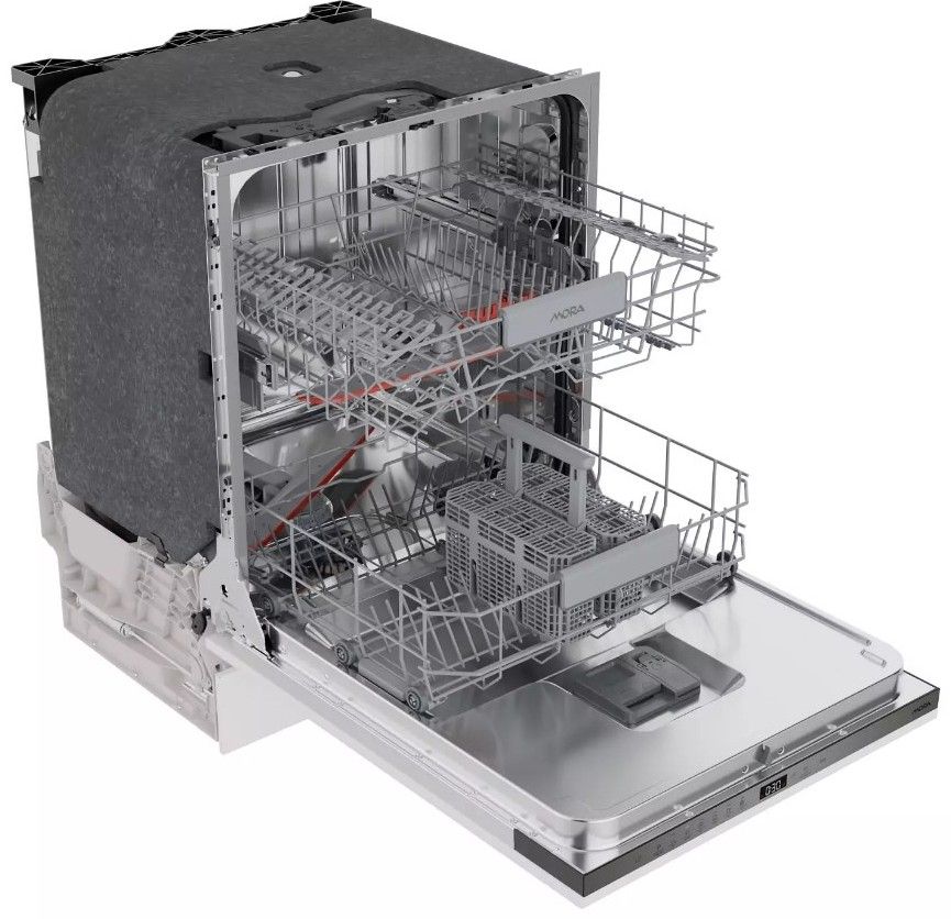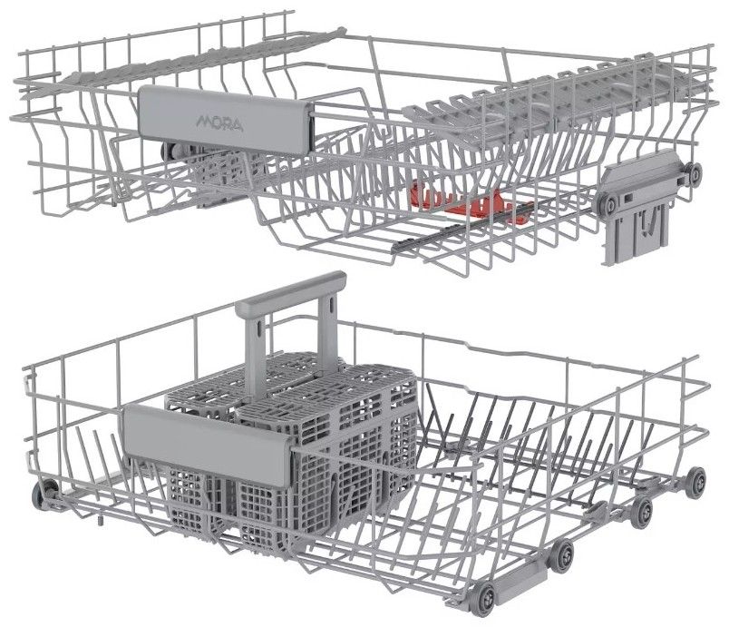 Vestavná plně integrovaná myčka Mora IM 6434 se 2 zásuvkami je vhodná i do větších rodin, jelikož je do ní možné umístit až 14 jídelních sad najednou. Příborový košík poskytuje maximální flexibilitu při mytí příborů. Podle vašich aktuálních potřeb můžete buď celý košík naplnit příborem nebo jej rozdělit na dva samostatné košíky, které lze různě umístit v rámci spodního koše myčky. Takto do myčky vložíte maximum nádobí. Skrytý ovládací panel je opatřen dotykovým ovládáním s displejem a mnoha praktickými funkcemi, jako je například RychléMytí, které umožňuje zkrátit délku vybraných programů. Zvolíte-li funkci SušeníPlus, po ukončení programu se automaticky pootevřou dvířka, aby tak unikla pára a následný sušicí cyklus byl efektivnější a energeticky úsporný. Energii pomáhá šetřit i možnost připojení přímo na teplou vodu pomocí speciální hadice, odolávající vysokým teplotám. Samozřejmostí je úsporný ECO Program nebo AUTO Program, který sám zvolí optimální parametry mytí. Praktický je i odložený start až o 24 hodin. Myčka má navíc praktický samočisticí filtr, a tak automaticky odstraní zbytky mastnoty a jídla ve filtru a zamezí nesprávnému chodu spotřebiče. Má také automatický program pro čištění celého vnitřku myčky včetně ramen a trysek. Se systémem AquaStop se nemusíte obávat nemilého překvapení v podobě vytopení.