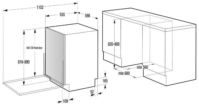 Jedná se o vestavný spotřebič, čelní dvířka nejsou součástí dodávky.