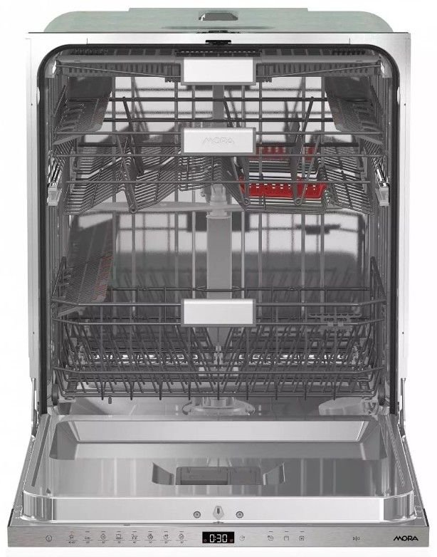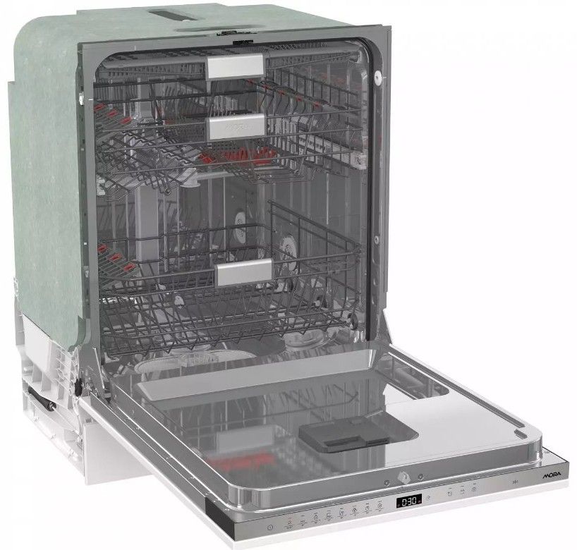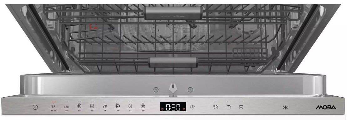 Vestavná plně integrovaná myčka MORA IMB 6686 v úsporné energetické třídě B si při standardní šířce 60 cm poradí s neuvěřitelnými 16 sadami nádobí. Nádobí dokonale umyje díky třem ostřikovacím ramenům a pěti výškovým úrovním proudu vody, takže bude bezvadně čisté, i když bude myčka opravdu plná a nádobí bude hustě naskládané. Je vybavená třemi koši s pohyblivými prvky a přizpůsobitelným nastavením; horní koš slouží pro pečlivé a šetrné mytí příborů a kuchyňského náčiní. Skrytý ovládací panel je opatřen dotykovým ovládáním s displejem a mnoha praktickými funkcemi, jako je například RychléMytí, které umožňuje zkrátit délku vybraných programů. Zvolíte-li funkci SušeníPlus, po ukončení programu se automaticky pootevřou dvířka, aby tak unikla pára a následný sušicí cyklus byl efektivnější a energeticky úsporný. Energii pomáhá šetřit i možnost připojení přímo na teplou vodu pomocí speciální hadice, odolávající vysokým teplotám. Samozřejmostí je úsporný ECO Program nebo AUTO Program, který sám zvolí optimální parametry mytí. Praktický je i odložený start až o 24 hodin. Myčka má navíc praktický samočistící filtr, a tak automaticky odstraní zbytky mastnoty a jídla ve filtru a zamezí nesprávnému chodu spotřebiče. Se systémem AquaStop se nemusíte obávat nemilého překvapení v podobě vytopení. Myčka je osazená novým výkonným invertorovým motorem a je velmi tichá (42 dB). Dokonce se i sama vyčistí – stačí jednou za měsíc pustit automatický program čiťtění, který vyčistí vanu, ostřikovací ramena i trysky.