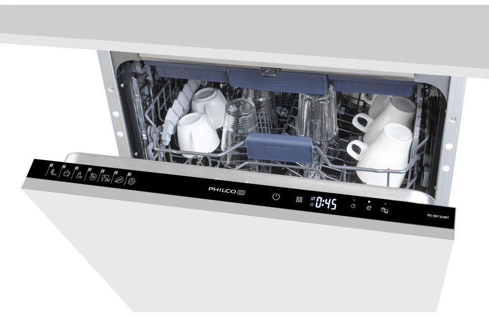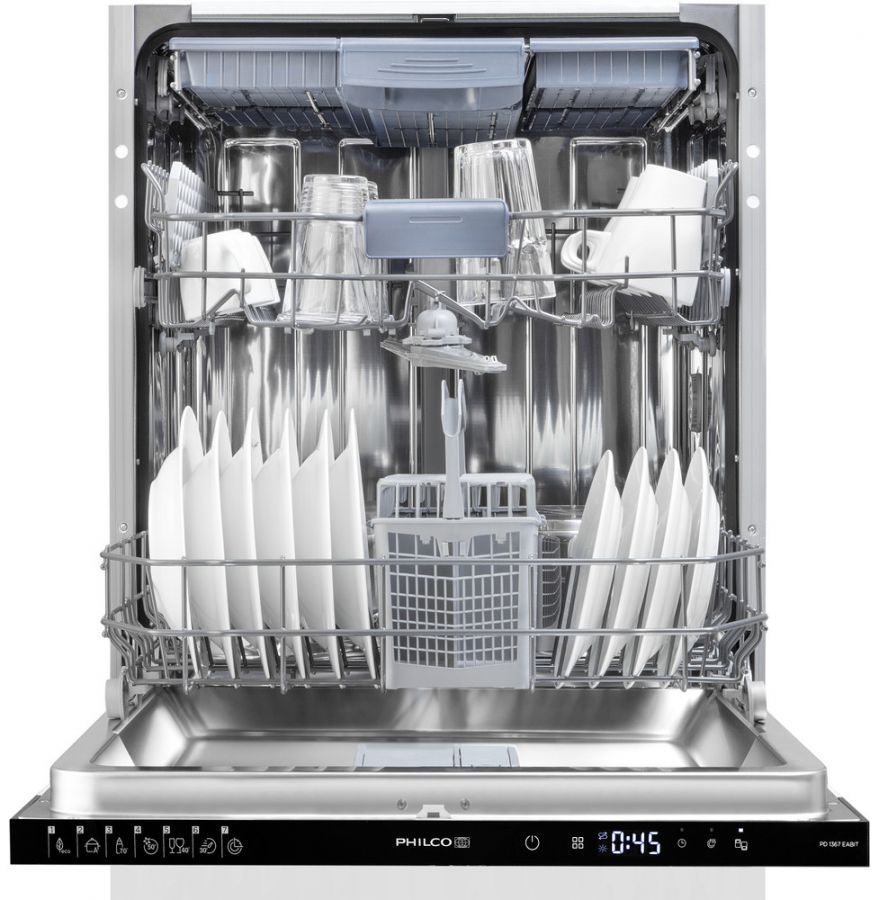 Vestavná myčka Philco PD 1367 EABIT v šířce 60 cm umyje 13 sad nádobí. Je vybavena funkcí TurboSušení pro nádobí čisté a suché tak, že je bez obav vyskládáte rovnou do linky.