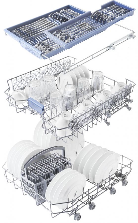 Tuto myčku v kuchyni zcela skryjete do kuchyňské linky, má plně integrovaný ovládací panel a není nutné řezat do soklu kuchyňské linky.
