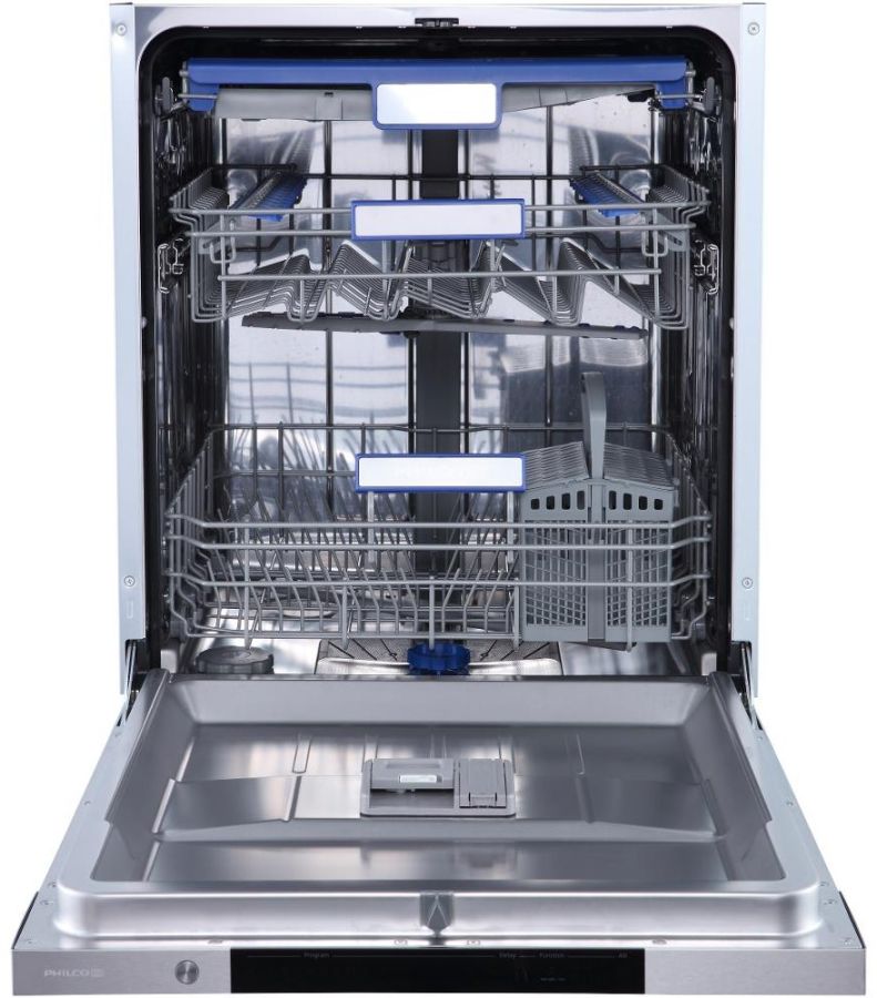 Plně integrovaná myčka Philco PDI 1468 BBIT šířky 60 cm, energetickou třídou B, invertorovým BLDC motorem se zárukou 10 let s bezproblémovým tichým chodem a dlouhou životností. Myčka pojme 14 sad nádobí, má LED displej a dotykové ovládání, vybrat si můžete z 8 programů.