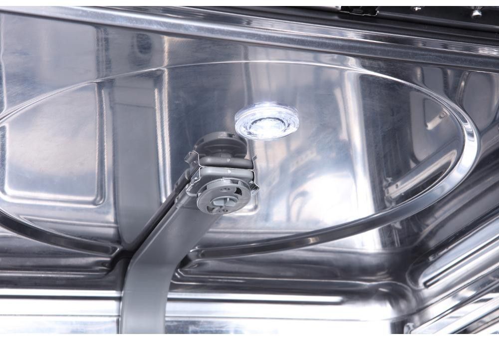 Nerezový interiér s osvětlením nabídne výsuvný koš na příbory, možnost nastavení výšky středního koše i při plném zatížení, držák pro mytí vysokých sklenic, antibakteriální filtr a především SpinProWash - speciální rameno s 360° sprchováním.