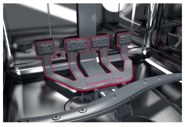 O 60 %* výkonnější vodní trysky umístěné ve spodním koši, které lze aktivovat pro zvýšení mycího výkonu a zajistit tak dokonale čisté nádobí bez předmytí. Rovněž optimalizuje umístění nádobí a poskytuje o 30 %** prostoru navíc ve spodním koši.