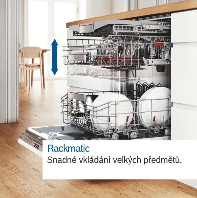 Díky systému Rackmatic může být výška horního koše jednoduše přenastavena až o 5 cm. A můžete to udělat, i když je koš plně naložený. To znamená ještě více možností nastavení a tím maximální flexibilitu.