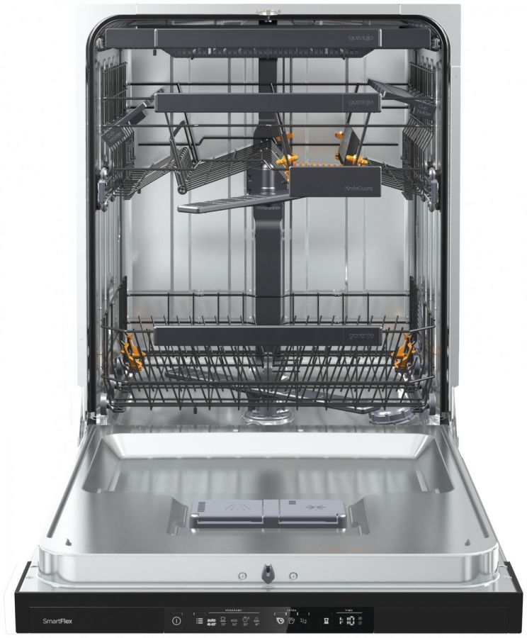 Koše jsou vybaveny barevnými pohyblivými prvky a přizpůsobitelným rozložením košů pro snadné nakládání. Skutečně jednoduchý systém nastavení košů ve třech úrovních umožňuje, aby se vešly i ty největší hrnce a talíře. Nosníky ve spodním koši lze snadno sklopit, abyste získali více prostoru pro větší předměty. Příbory můžete perfektně zorganizovat ve speciálním zásobníku. Kusy příborů jsou umístěny odděleně tak, aby nedošlo k poškrábání a mohli dokonale vyschnout. Každý detail je pečlivě navržen tak, aby manipulace byla tak jednoduchá, jak je to jen možné.