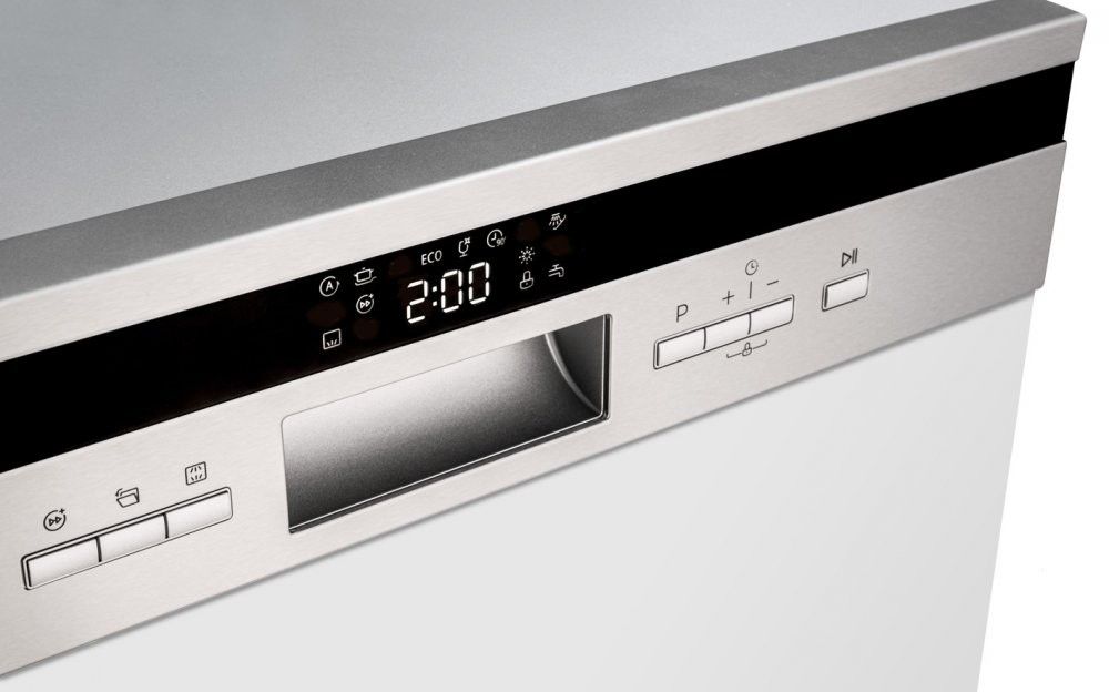 LED displej vám umožní neustále kontrolovat zvolené programy a usnadňuje veškerá nastavení. Informuje o čase, který zbývá do konce mytí, a upozorní na to, že je potřeba doplnit sůl nebo leštidlo.