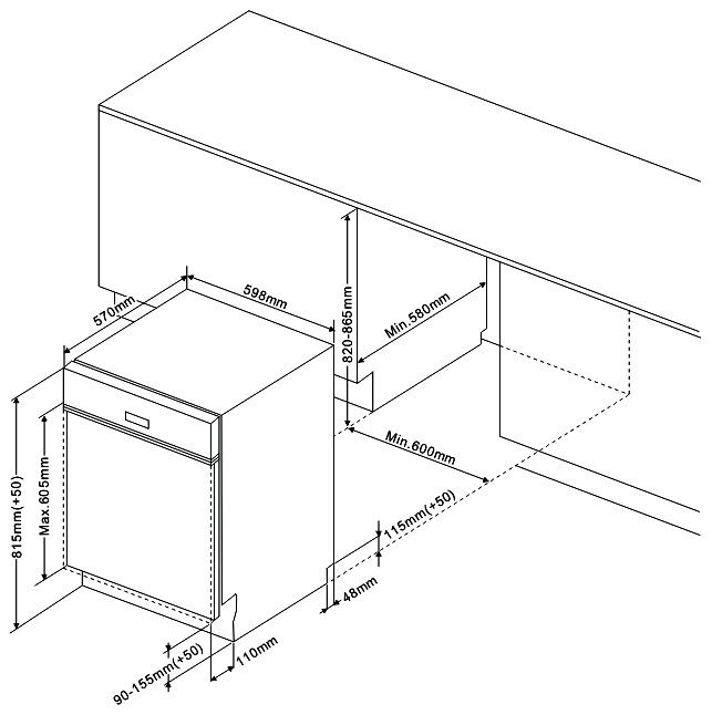 Jedná se o vestavný spotřebič, čelní dvířka nejsou součástí dodávky.