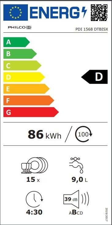 Polo integrovaná vestavná myčka Philco PDI 1568 DTBISX s invertorovým BLDC motorem se zárukou 10 let a tichým chodem 39 dB s dlouhou životností.