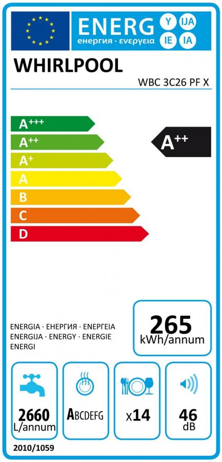 Spotřeba energie (2010/30/EU): 265 kWh/rok