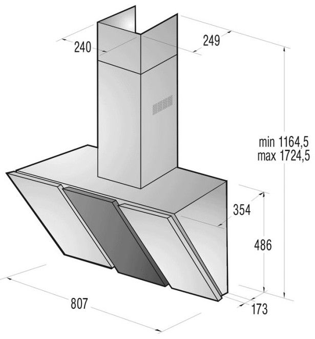 Komínový odsavač na stěnu se 4 rychlostmi výkonu, dotykovým ovládáním, zpětná klapka s možností odtahu nebo recirkulace. Výkon odsavače 750 m3/h.