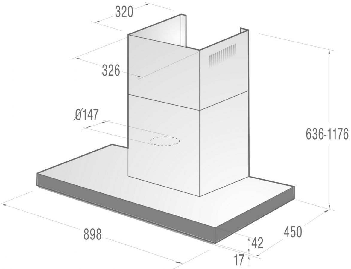 Komínový odsavač na stěnu se 3 rychlostmi výkonu, zvýšeným prouděním vzduchu, zpětnou klapkou a možností odtahu nebo recirkulace. Výkon odsavače 462 m3/h.