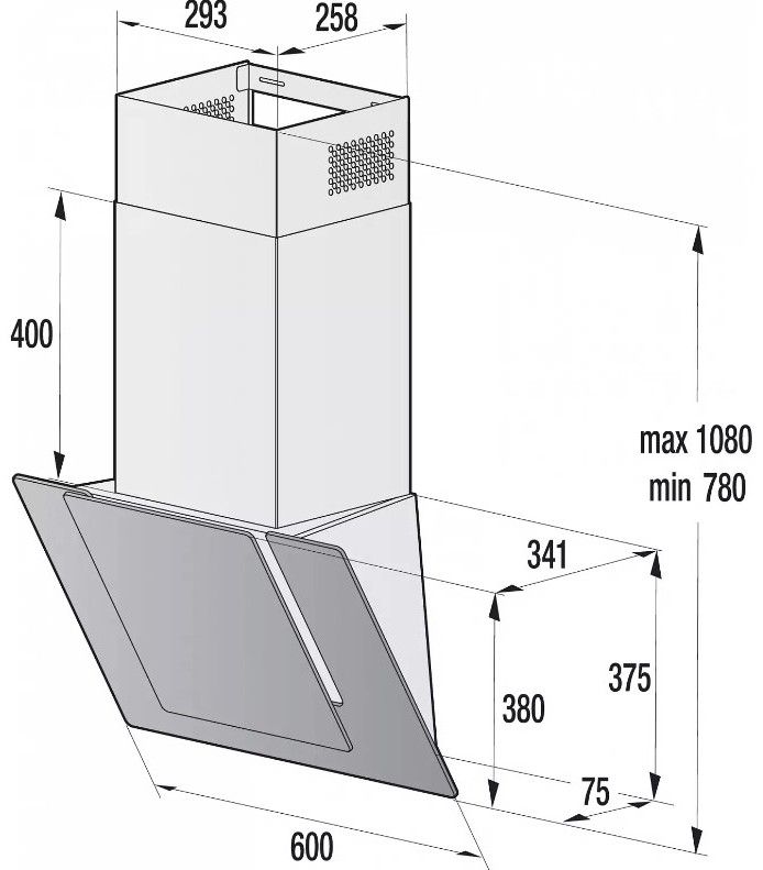 Komínový odsavač se 3 rychlostmi výkonu, zpětnou klapkou a možností recirkulace. Výkon odsavače 608 m3/h.