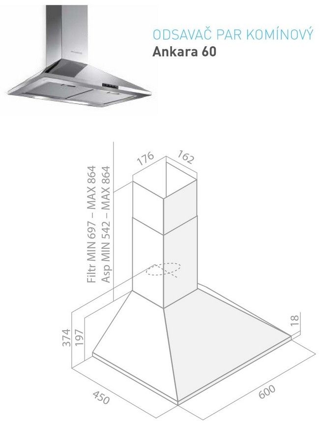 Typ odsavače: KOMÍNOVÝ