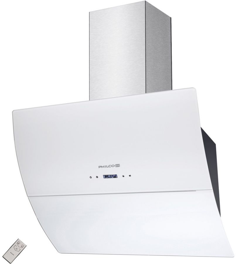 Komínový odsavač par Philco PEW729WR s nakloněným designem a v provedení bílého skla se řadí do energetické třídy A. Ovládání je dotykové s bílým podsvícením s magnetickým dálkovým ovladačem. Má jednoduchou obsluhu, 4 rychlosti odsávání včetně boosteru, LED osvětlení 2x 1,5 W. Odsávání je při něm možno přímo do komína, nebo můžete využít i recirkulaci. Šířka 90 cm.