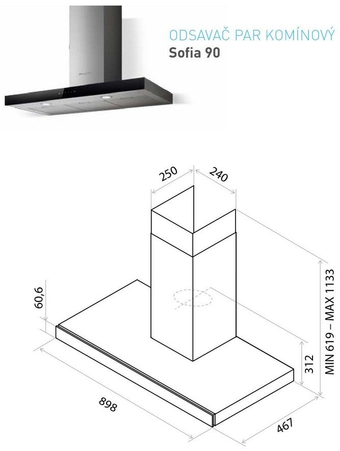 Komínový odsavač na stěnu se 4 rychlostmi výkonu, dotykovým ovládáním, indikací znečištění filtru a režimem Boost. Výkon odsavače 713 m3/h.