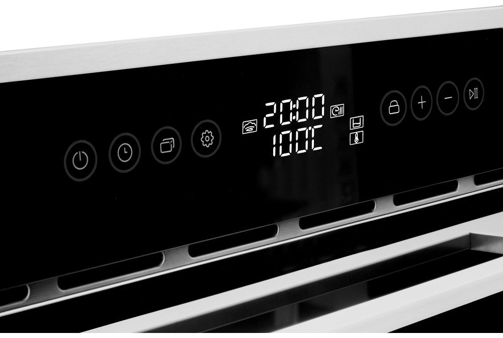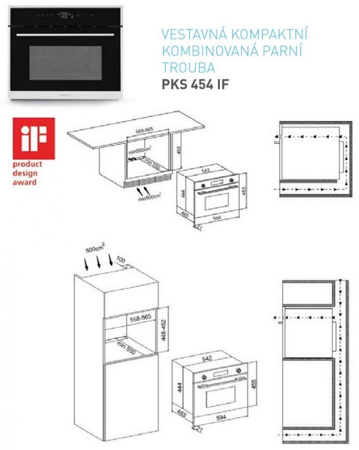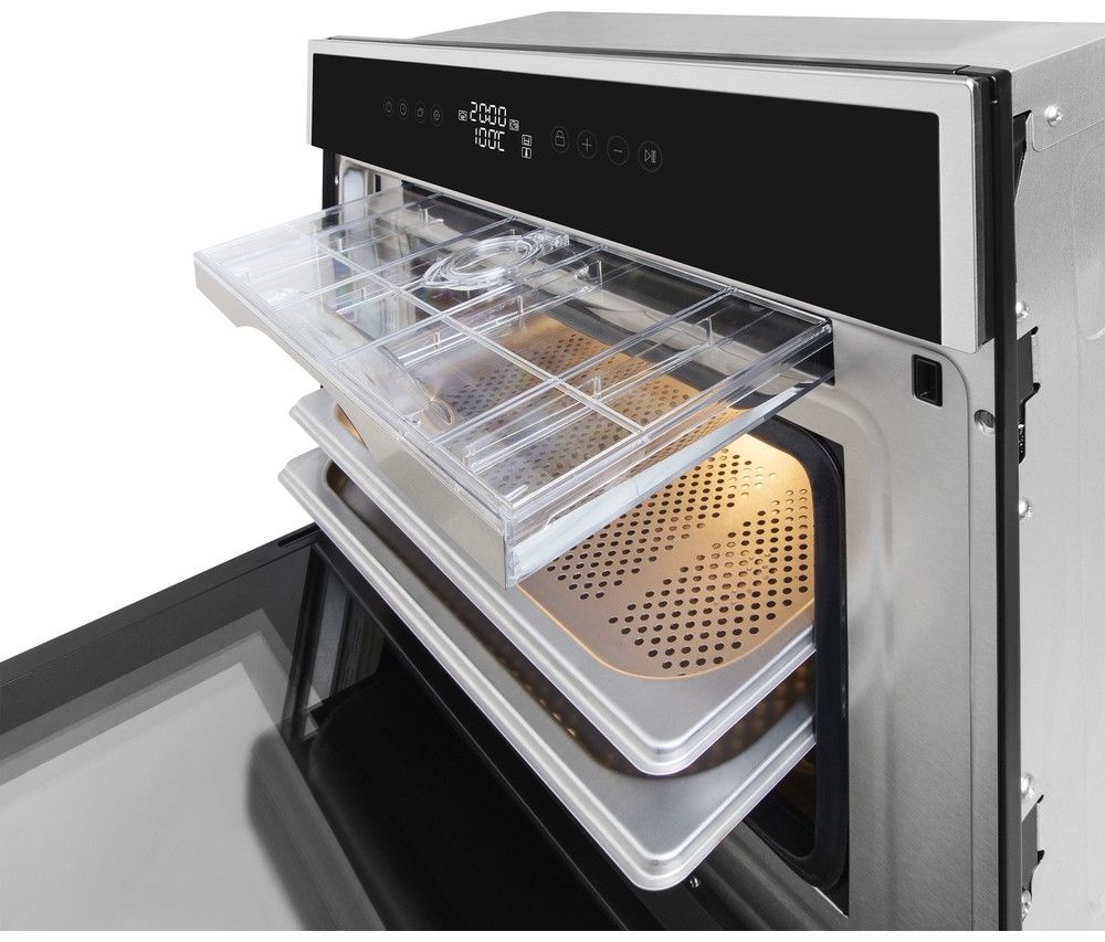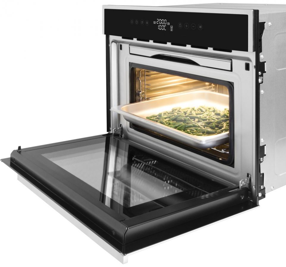 Vestavná kombinovaná parní trouba o objemu 38 l. Má parní generátor, 8 programů, minutku, digitální hodiny s časovačem, dětský zámek a dveře s bezpečnostním spínačem.