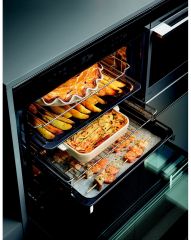 Pečte více, pečte rychleji!Cook4 přináší mimořádnou úroveň flexibility s možností připravovat až čtyři pokrmy naráz bez rizika smíchání chutí či vůní. Vysoce účinné topné těleso po aktivaci funkce Cook4 spolupracuje se systémem cirkulace vzduchu, který rovnoměrně ohřívá vnitřní prostor trouby a zajišťuje konstantní oběh vzduchu, čímž zaručuje bezkonkurenční kvalitu pečení i výraznou úsporu času a energie.