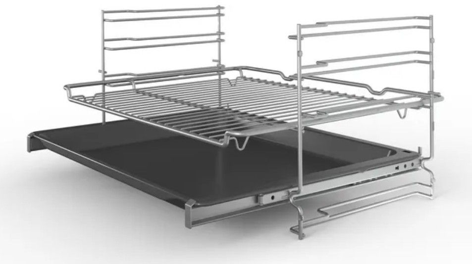 Náš výsuvný systém je bezpečný a velmi snadný na obsluhu. Je velmi jednoduché umístit pokrmy na teleskopické výsuvy, a už nehrozí popálení, když potřebujete zjisit stav vaší večeře.