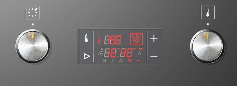 Funkce: horní a dolní topné těleso, elektrický gril - malý, elektrický gril, eletrický gril s ventilátorem, dolní a kruhové těleso s ventilátorem, kruhové těleso s ventilátorem, dolní těleso s ventilátorem, rychlý předehřev trouby, EcoClean, rozmrazování