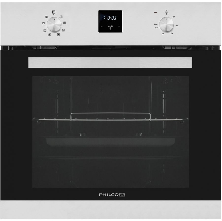 Vestavná multifunkční trouba Philco POB 698 X v nerezovém provedení o objemu 69 litrů s funkcí minutky a bílým displejem má až 8 funkcí, lze ji nastavit v teplotním rozsahu 50- 250 °C.
