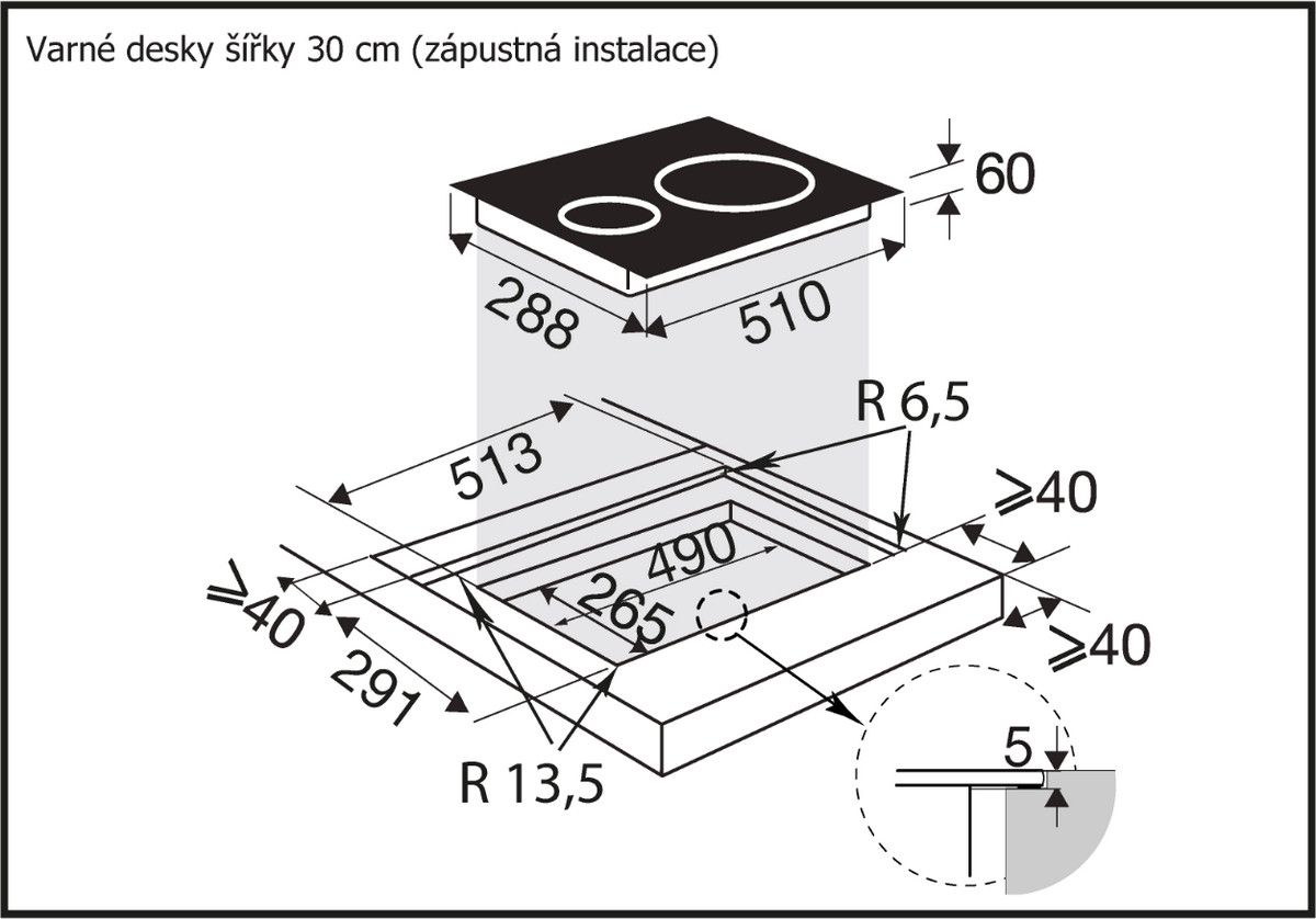 - Možnost zapuštění varné desky do pracovní desky: ANO