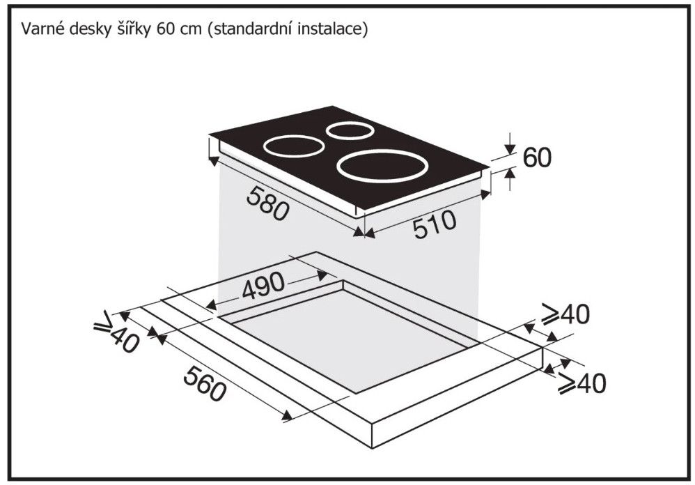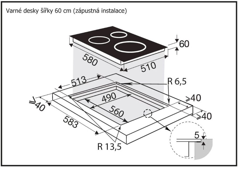 Možnost zapuštění varné desky do pracovní desky: ANO
