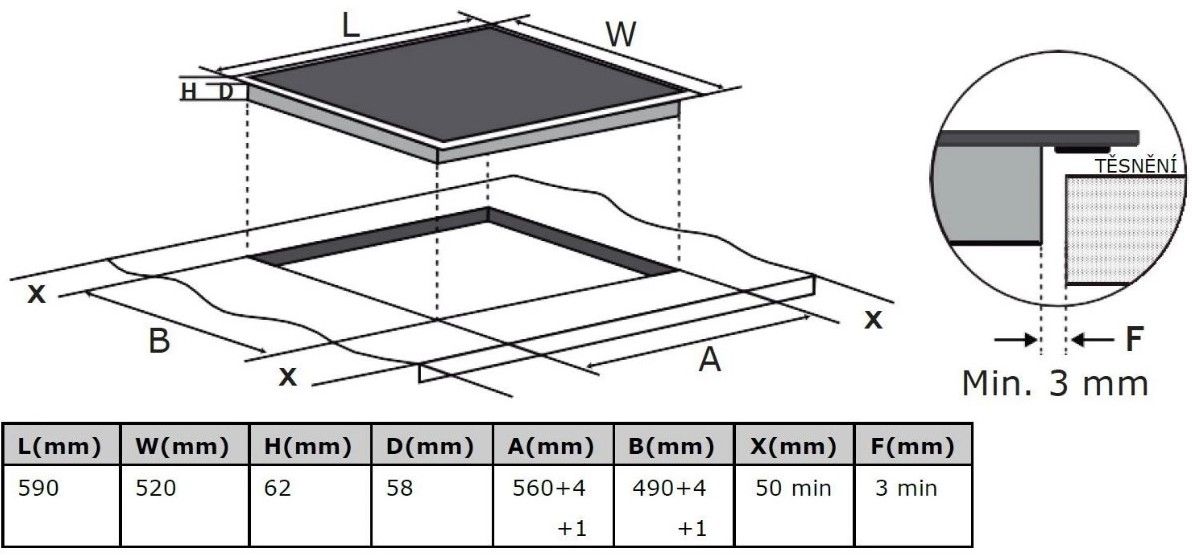Možnost zapuštění varné desky do pracovní desky: ANO