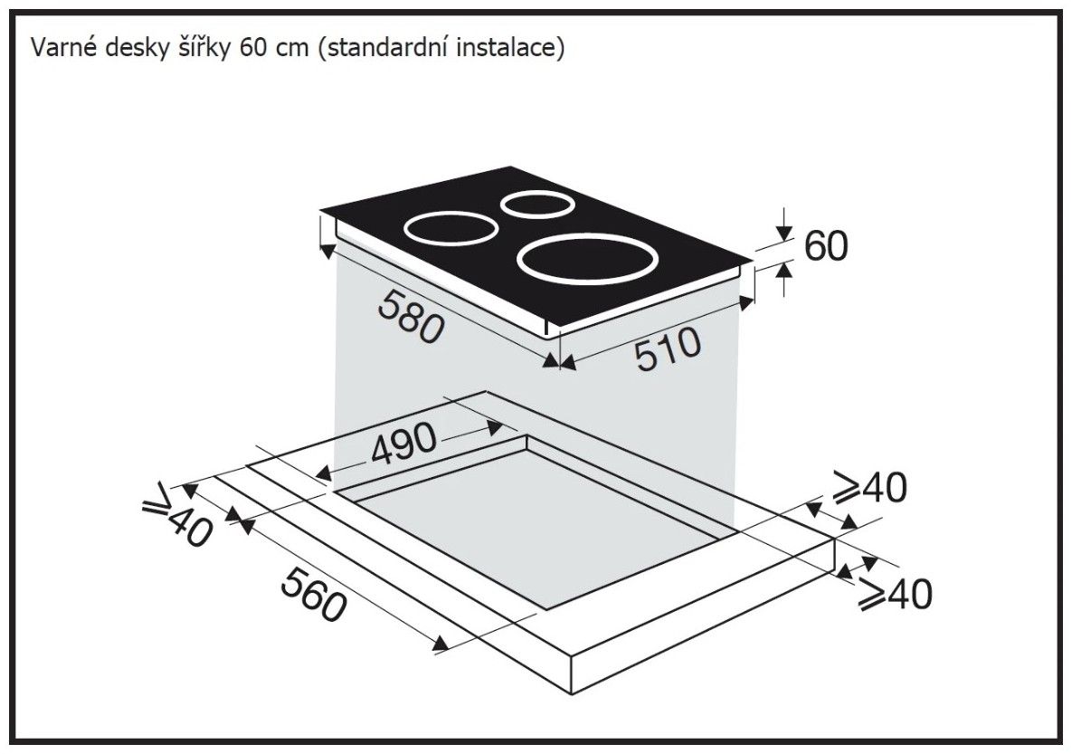 Možnost zapuštění varné desky do pracovní desky: ANO
