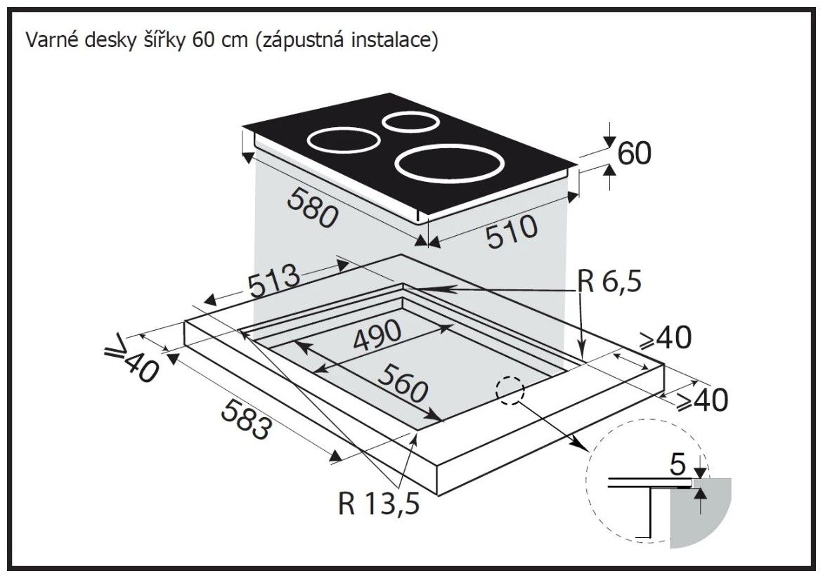- Možnost zapuštění do pracovní desky