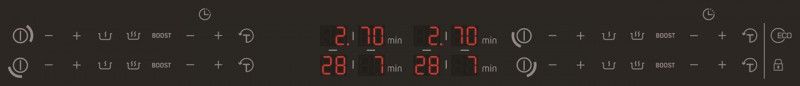 - Detekce podpětí: Sníží výkon nebo přeruší chod varné zóny v případě podpětí a chrání tak el. obvody desky před poškozením.