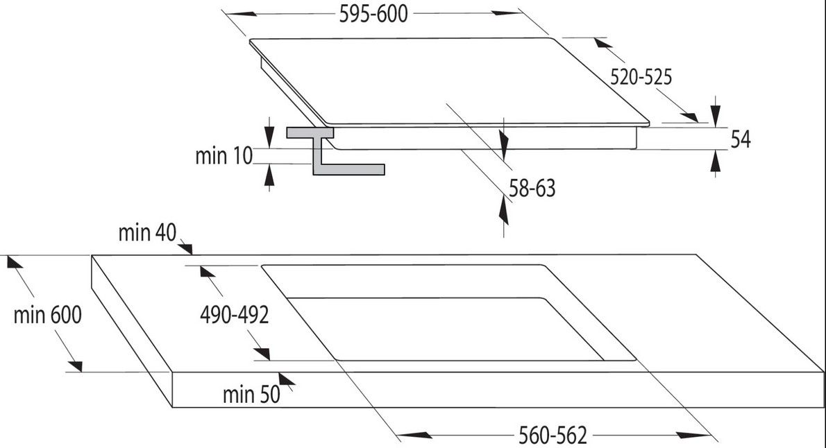 Indukční vestavná sklokeramická deska se 4 indukčními zónami, dotykovým ovládáním a dětskou bezpečnostní pojistkou.