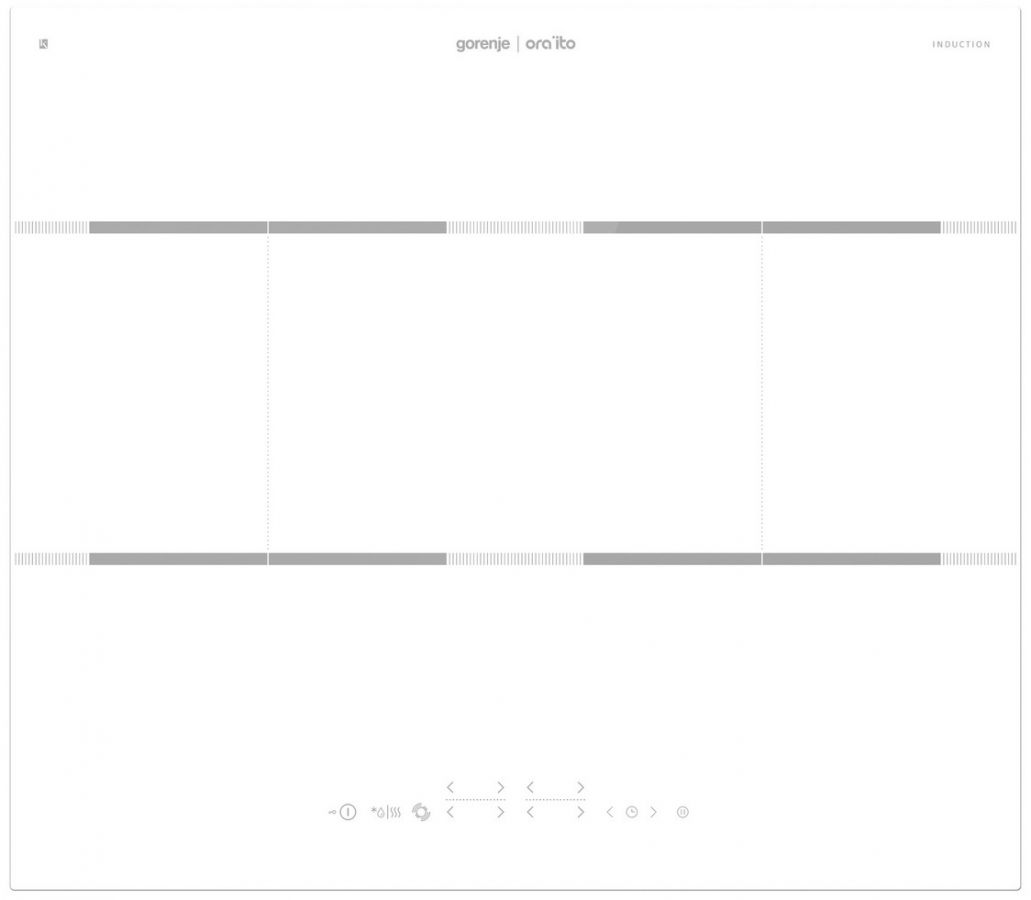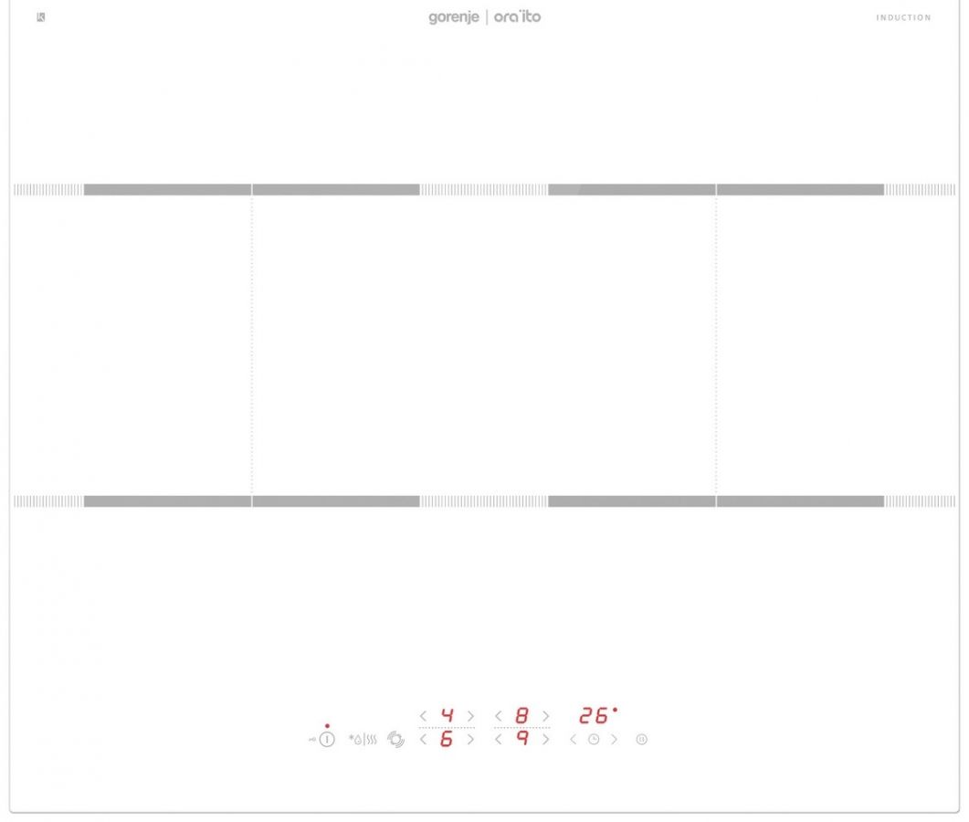 Indukční vestavná sklokeramická deska se 4 indukčními zónami, funkcí AreaFlex, Recall pro obnovení nastavení, EggTimer, časovačem, StopGo - okamžité dočasné zastavení vaření bez ztráty nastavených parametrů, StayWarm - udržování teploty 70 °C, SoftMelt - šetrné rozpouštění 42 °C, detekcí polohy hrnce a PowerBoost.