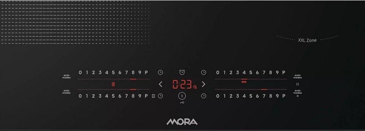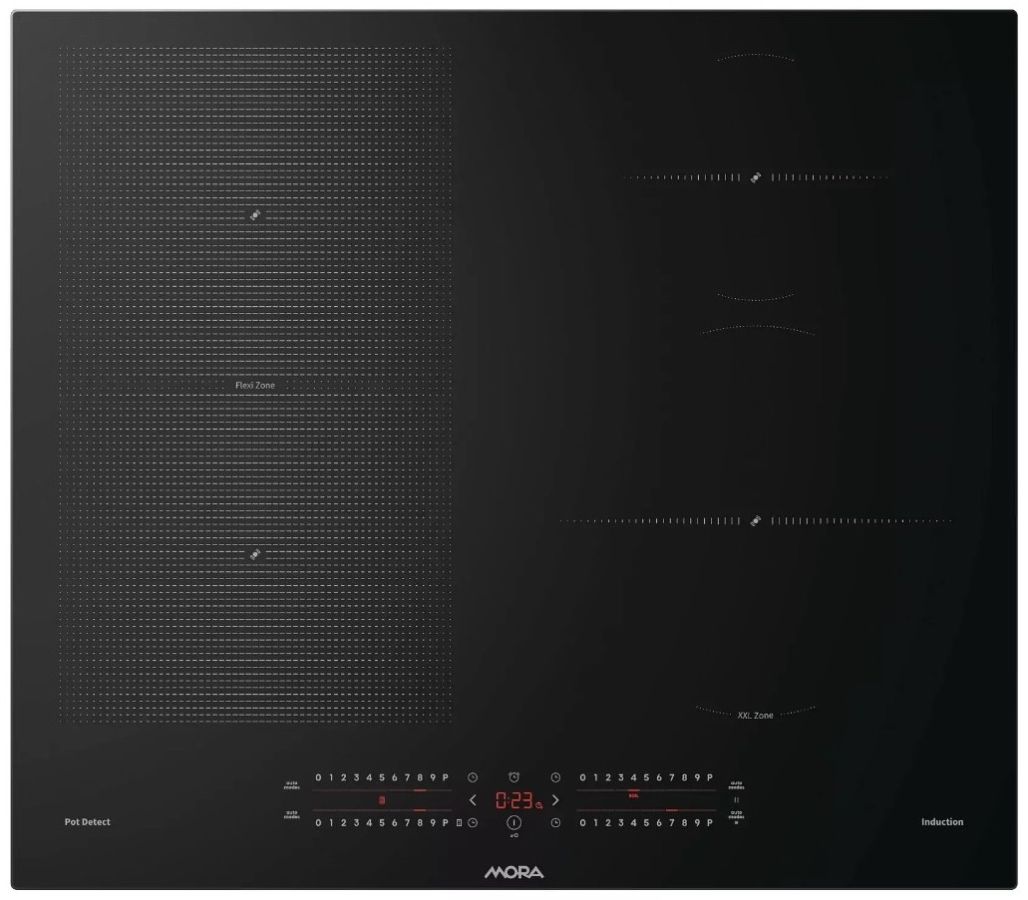 Vařte s indukčními deskami MORA bez omezení. Indukční vestavná deska MORA VDIS 677 C s posuvným dotykovým ovládáním Slider nabízí maximální flexibilitu a univerzálnost, pokud jde o počet, velikost nebo tvar nádobí – od velmi malých až po velké, včetně jakýchkoli netypických tvarů. Díky speciální osmiúhelníkové zóně FlexiZone umožňuje vaření prakticky po celé ploše indukčního varného panelu. Pokud však nepotřebujete využívat celou tuto zónu, není nutné ji aktivovat a můžete vařit jako na běžné varné ploše. Deska má dvě zóny FlexiZone, takže můžete využít obě, nebo jen jednu z nich. Praktické broušené hrany umožňují snadnou montáž desky do roviny s pracovní plochou. Deska automaticky zaznamená polohu hrnců a aktivuje příslušnou zónu, pod kterou se hrnec nachází. Aktivace proběhne do 10 sekund od zapnutí, přičemž ji můžete spustit i manuálně. Jednou z dalších skvělých funkcí je extra výkon SuperBoost, který zvyšuje intenzitu ohřívání a zkracuje čas potřebný na ohřev. Funkce KeepWarm udržuje stabilní teplotu 70 °C, díky čemuž si hotová jídla uchovají svou teplotu i původní chuť, dokud je nebudete servírovat. Funkce EasyMelt šetrně rozpustí čokoládu nebo máslo při konstantní teplotě 42 °C, čímž vytváří dokonalé podmínky pro rozpouštění bez spálení. Tuto funkci lze využít i pro šetrné rozmrazování. TimeService uchovává záznam o tom, jak dlouho už vaříte, takže délku vaření můžete snadno zkontrolovat přímo na varné desce. S funkcí Timer lze nastavit časovač vaření až na 99 minut, po jejichž uplynutí se varná deska automaticky vypne. Doplňkem je tzv. kuchyňská minutka TimeMinutes, která je nezávislá na varných zónách. Po uplynutí nastaveného času vás upozorní speciální zvukový signál. Šikovnou funkcí je také Pause, která při nečekané situaci umožní dočasně pozastavit vaření bez ztráty nastavení. Některá nastavení lze přizpůsobit podle vašich preferencí, například délku a hlasitost zvukových upozornění. Funkce Memory se hodí, pokud varnou desku nechtěně vypnete. Máte pět sekund na obnovení naposledy použitých nastavení, což je užitečné zejména při přípravě více pokrmů s různými nastaveními.