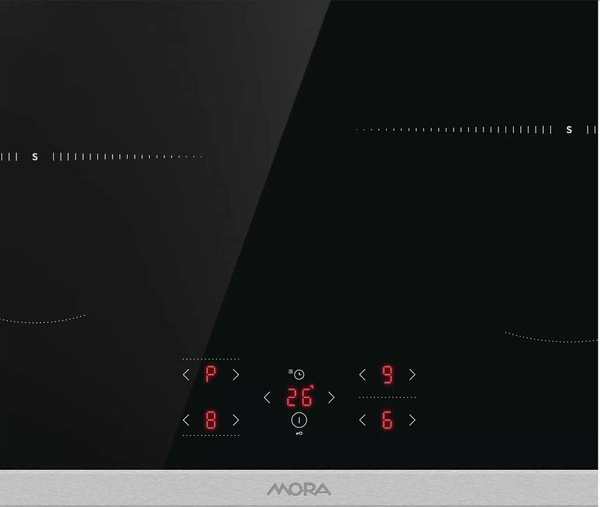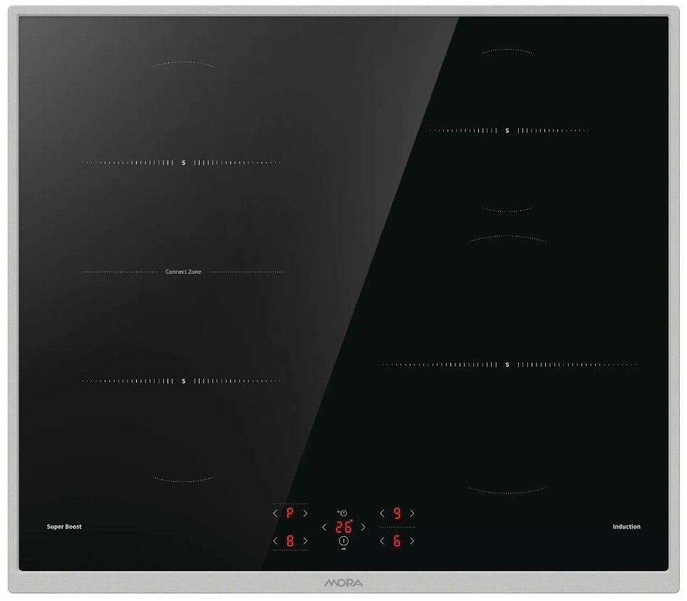 Indukční vestavná sklokeramická deska MORA VDIT 67E X s praktickým nerezovým rámečkem, disponuje jednou propojenou zónou ConnectZone pro zjednodušení vaření ve velkých hrncích. Dvě samostatné levé varné zóny nad sebou se jediným dotykem přemostí a spojí do jedné velké zóny, což využijete při přípravě většího množství jídla a příloh najednou. Jednou z dalších skvělých funkcí je extra výkon SuperBoost, který zvyšuje intenzitu ohřívání, pro zkrácení času, potřebného na ohřev. S funkcí Timer lze nastavit časovač vaření až na 99 minut a varná deska se po uplynutí času automaticky vypne. Doplňkem je tzv. kuchyňská minutka TimeMinutes, která je nezávislá od varných zón, takže po uplynutí nastaveného času vás jen upozorní speciální zvuk. Některá nastavení je možné přizpůsobit podle vašich preferencí, nastavit můžete délku a hlasitost zvuku nebo automatický zámek i celkový maximální výkon varné desky.