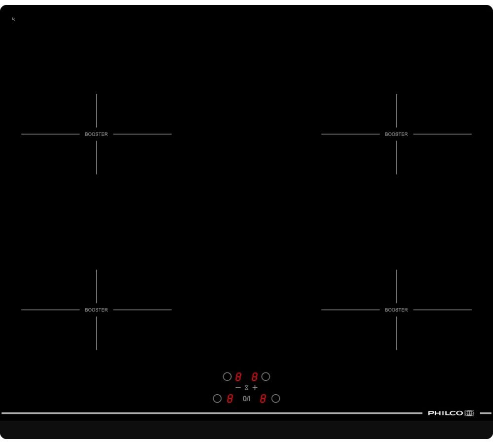 Indukční vestavná deska se 4 indukčními zónami. Má dotykové ovládání, detekci nádobí, indikaci zbytkového tepla, funkci Auto power a Auto stop časovač, Booster a dětský zámek.