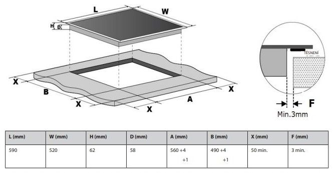 Indukční vestavná deska se 4 indukčními zónami. Má dotykové ovládání, indikaci zbytkového tepla, ochranu proti přehřátí a přetečení a dětský zámek.