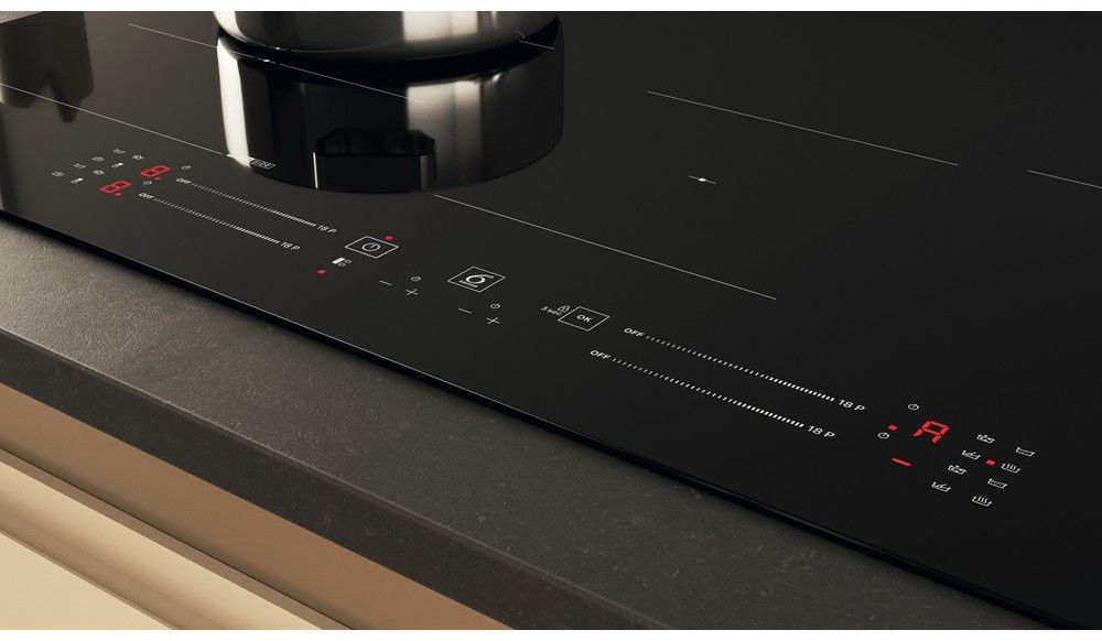 Intuitivní vaření. Intuitivní dotyková stupnice/posuvník výkonu umožňuje ovládat výkon každé varné desky, zatímco podsvícený displej ukazuje, které varné zóny jsou právě v provozu.
