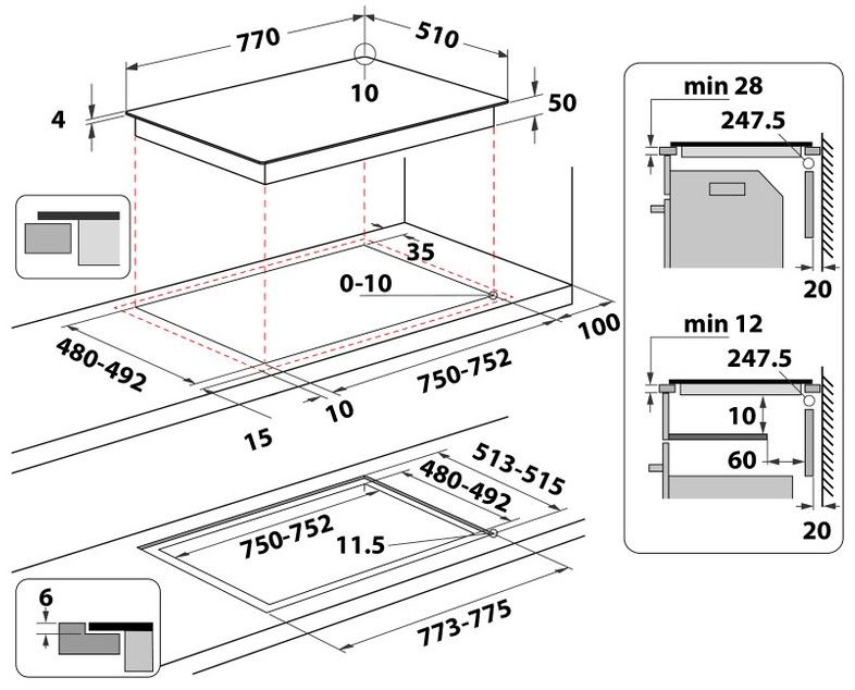 Indukční vestavná sklokeramická deska se 4 indukčními zónami, dotykovým ovládáním a časovačem