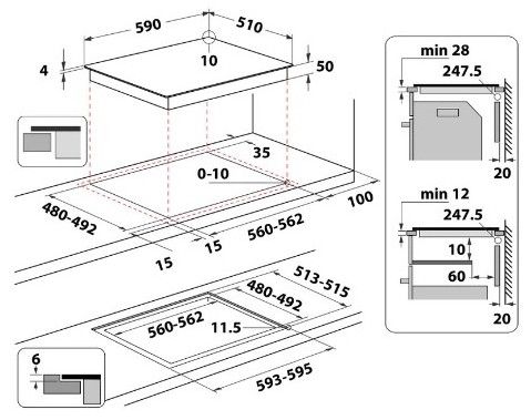 Indukční vestavná sklokeramická deska se 4 indukčními zónami, dotykovým ovládáním a časovačem.